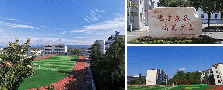 学校在加强校园硬件建设的同时,着力于校园文化建设。几年来,学校紧紧围绕“阳光、自信、健康、快乐”育人目标,以乡村少年宫活动为载体,从主题教育、书香浸润、艺体联动、实践拓展等多方面打造特色活动文化,在特色活动的开展中提升教育教学质量。创设了“四节”活动,即四月《古道茶韵》茶文化节;六月出彩少年科技节;十月校园达人体育节;十二月青春飞扬艺术节;成立了蓝天广播站;创设了翠竹文学社、茶艺、书画、阅读、跆拳道、舞蹈、声乐、器乐、象棋、田径队、男女篮球队、科技制作等13个兴趣小组;建设了高标准的茶艺室,自编了校本教材《古道茶韵》,开设了茶艺表演课。2016年10月,学校男女篮球队在全县比赛中双双获得甲组冠军,其中女子篮球队,2016、2017、2018获得了三连冠,每年都有学生被省重点高中录取为体艺特长生。2008年“桃源县体育后备人才训练基地”落户本校;器乐和舞蹈社团成员也在县、市文艺汇演中多次获得一等奖,每年为高一级学校输送了大批音、体、美特长生。2019年,学校被教育部授予“2020年冬奥会教育示范学校”称号。在“恒源祥”中国中学生作文大赛中,每年都有学生获国家、省级一、二、三等奖,曾一度成为作文大赛中的“七中现象”。